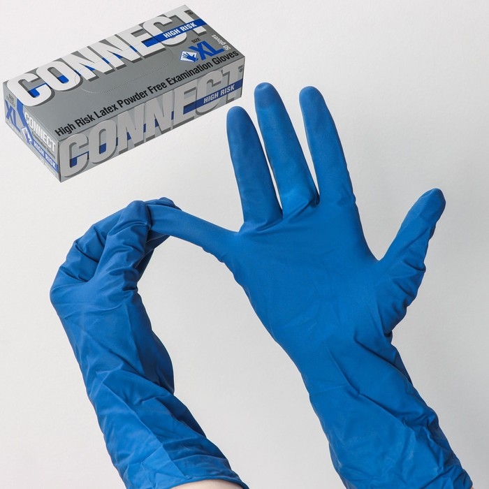 Перчатки латексные High Risk, смотровые, нестерильные, размер XL, 50 шт/уп (25 пар), синие