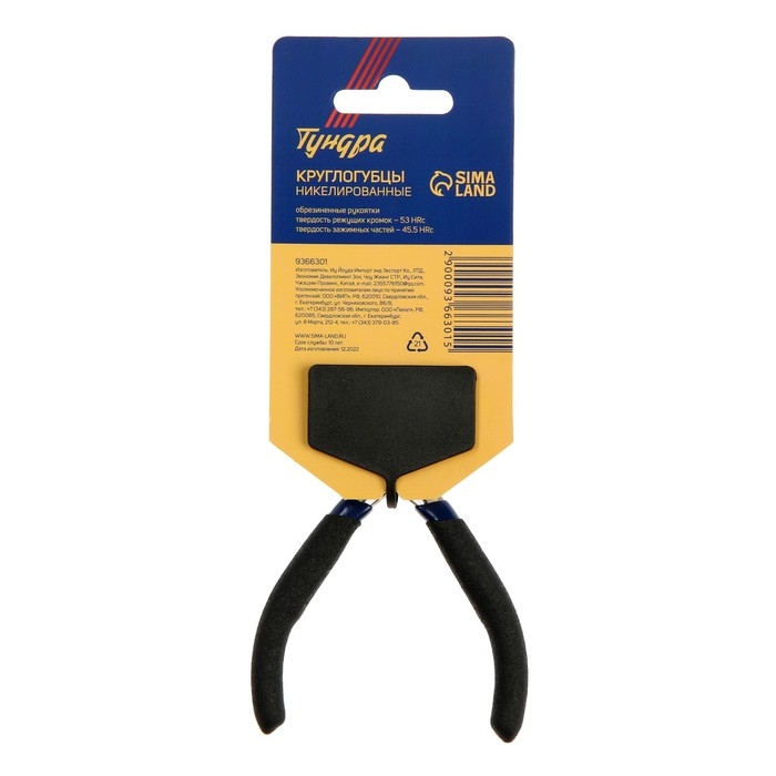 Круглогубцы ТУНДРА mini, никелированные, обрезиненные рукоятки, 125 мм