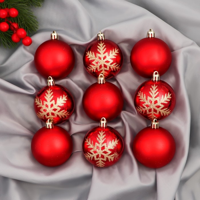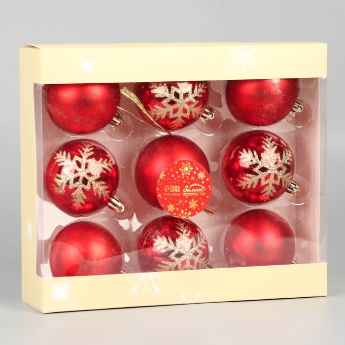Набор шаров пластик d-6 см, 9 шт "Адель" снежинки, красный