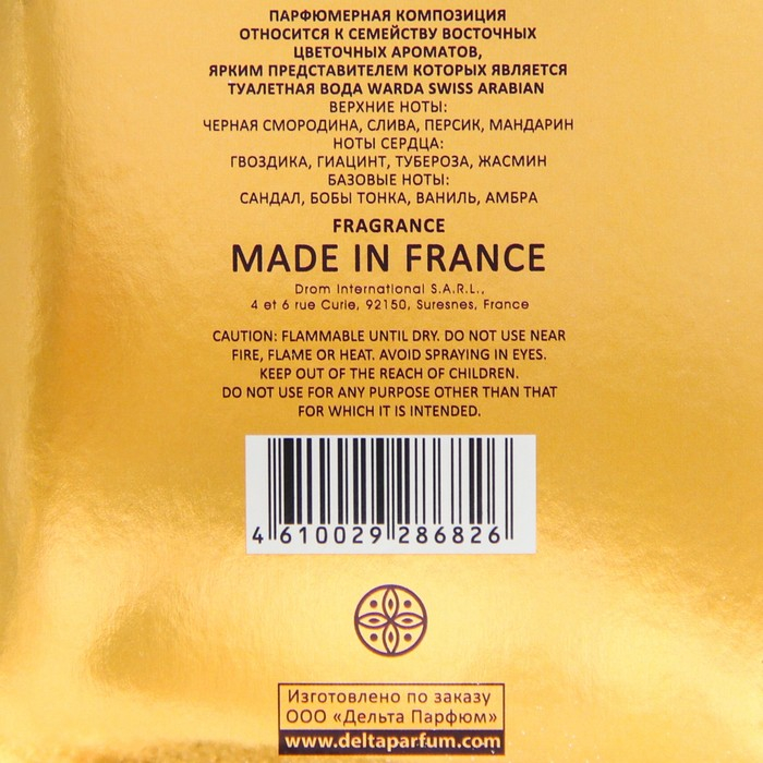 Верхние ноты: чёрная смородина, слива, персик, мандарин.