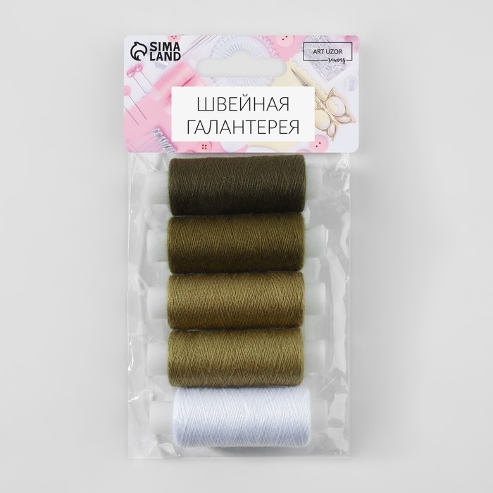 Набор ниток, 40/2, 183 м, 5 шт, цвет хаки/зелёный спектр