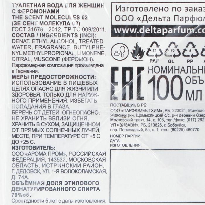 Туалетная вода женская с феромонами The Scent Molecules 02, 100 мл (по мотивам Eclat A`Arpege (Lanvin)