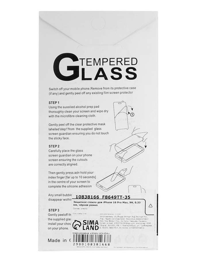 Защитное стекло для iPhone 16 Pro Max, 9H, 0.33 мм, чёрная рамка