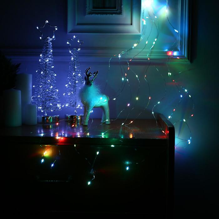 Гирлянда «Конский хвост» 10 нитей по 1 м, IP20, серебристая нить, 100 LED, свечение мульти, 12 В