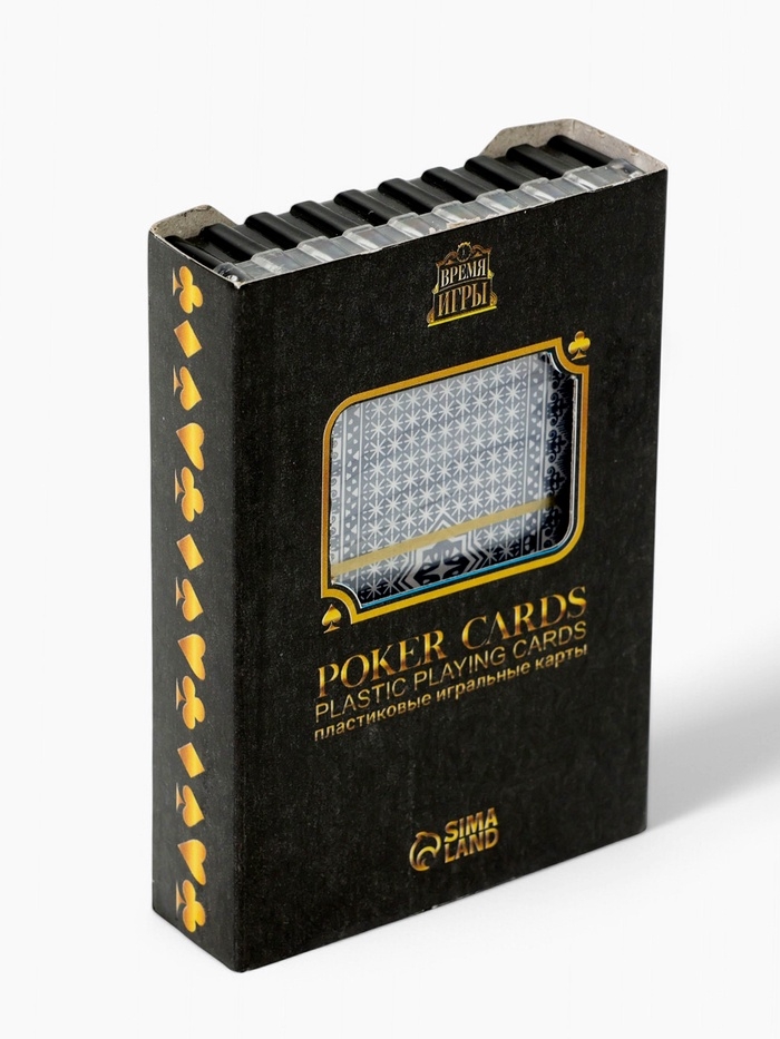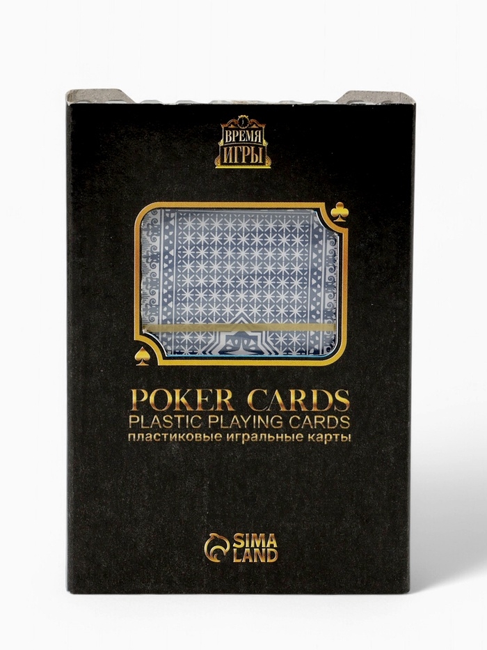 Карты игральные пластиковые 54 шт "Время игры", покер, 9,5 х 6,5 см, синяя рубашка
