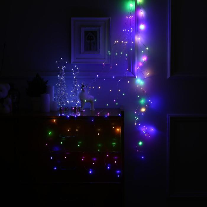 Гирлянда «Конский хвост» 10 нитей по 1 м, IP20, серебристая нить, 100 LED, свечение мульти, 12 В
