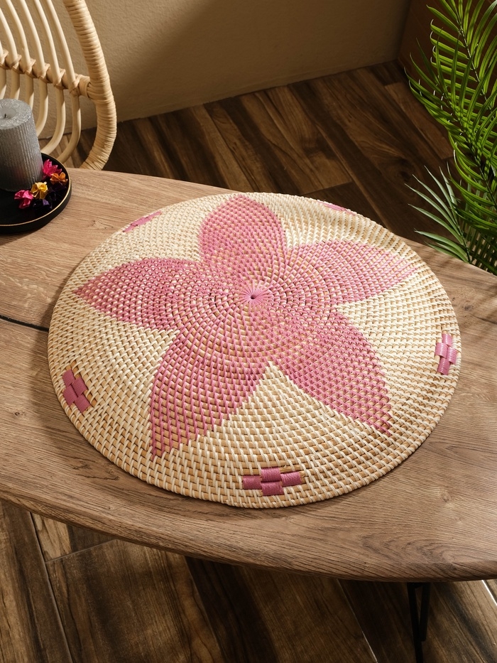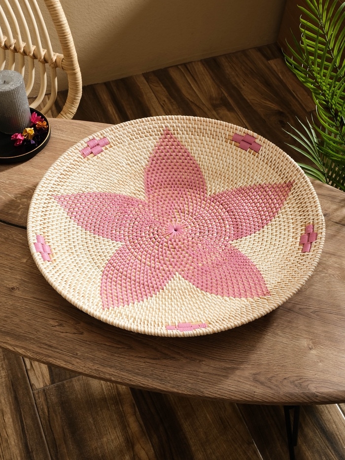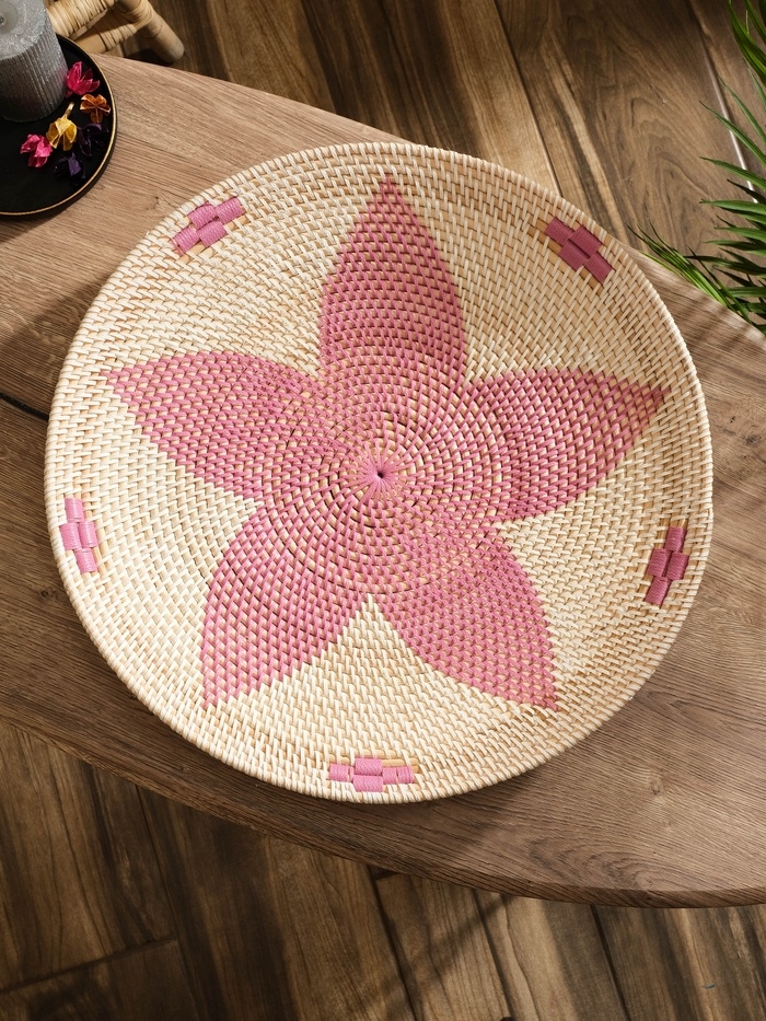 Тарелка декоративная плетеная ротанг "Цветок", 50х50х5 см, розовый