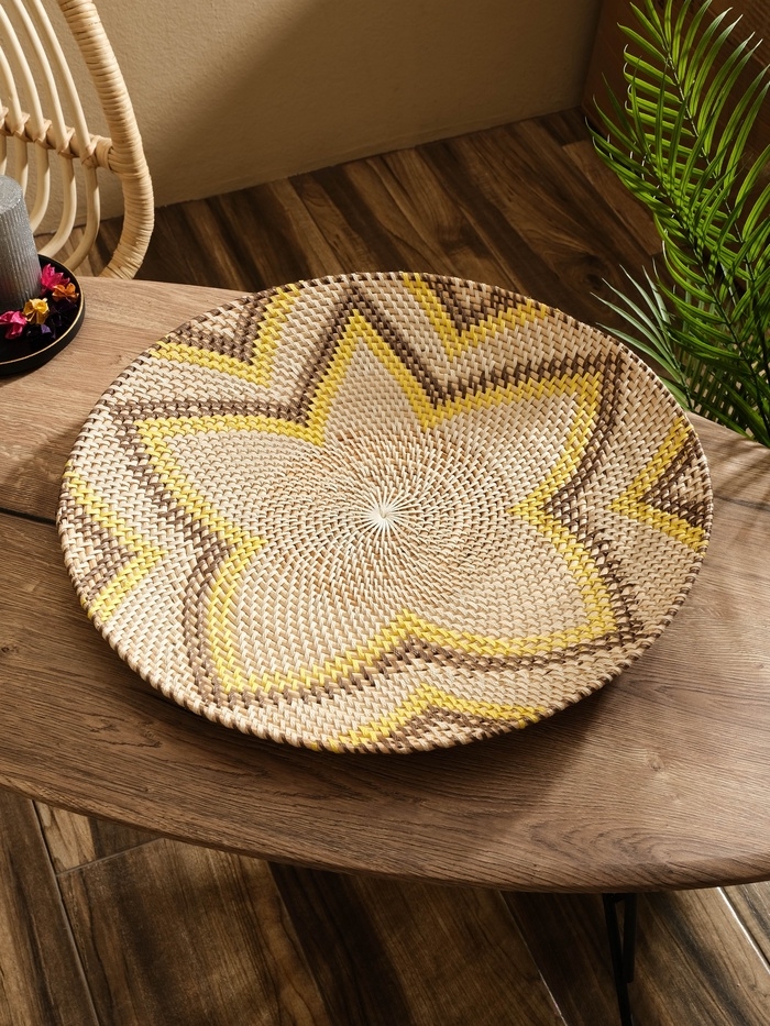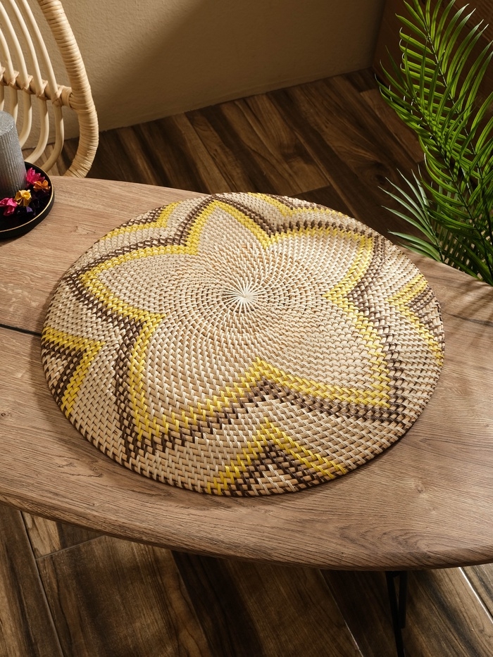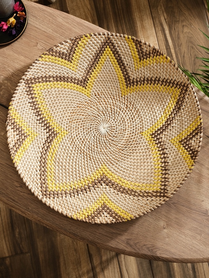 Тарелка декоративная плетеная ротанг "Цветок", 50х50х5 см, чёрно-жёлтый