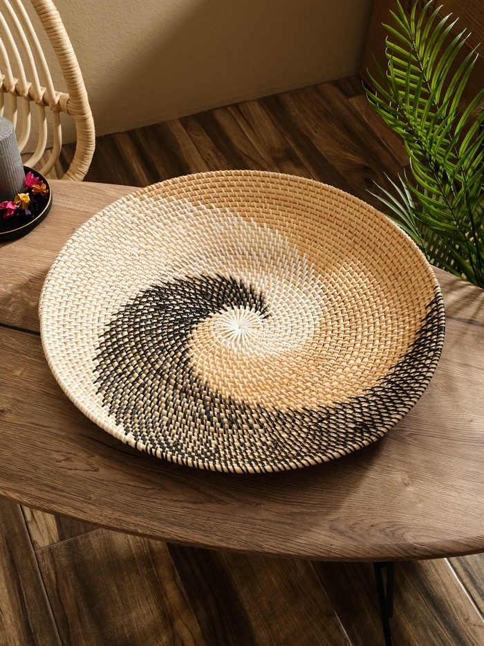 Тарелка декоративная плетеная ротанг "Узор 2", 50х50х5 см