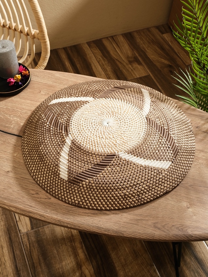 Тарелка декоративная плетеная ротанг "Узор 1", 50х50х5 см