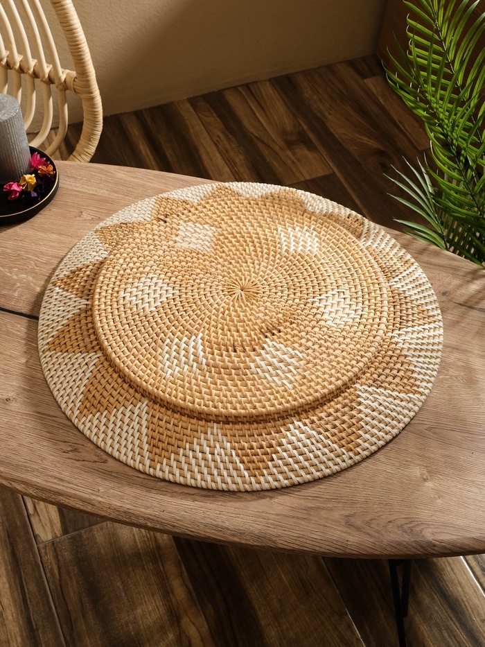 Тарелка декоративная плетеная ротанг "Солнце", 50х50х5 см