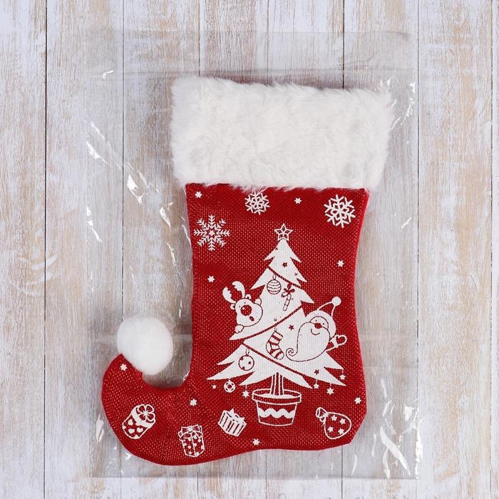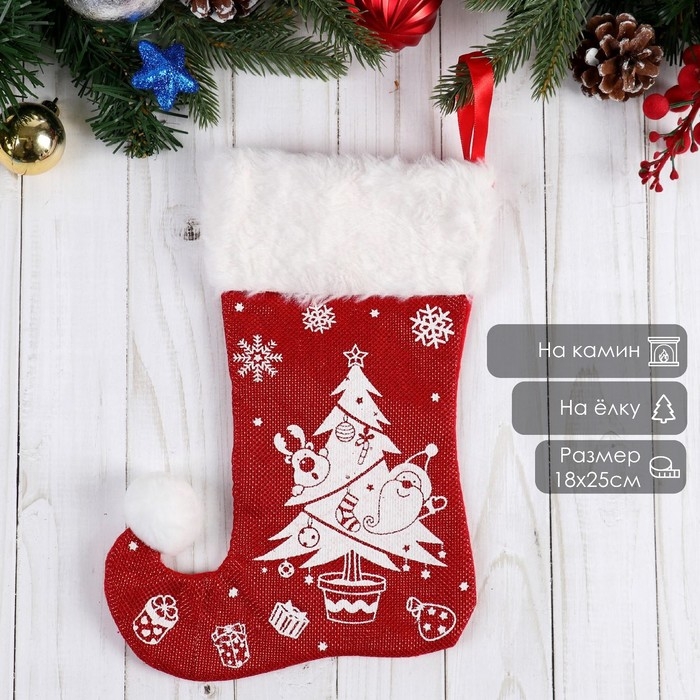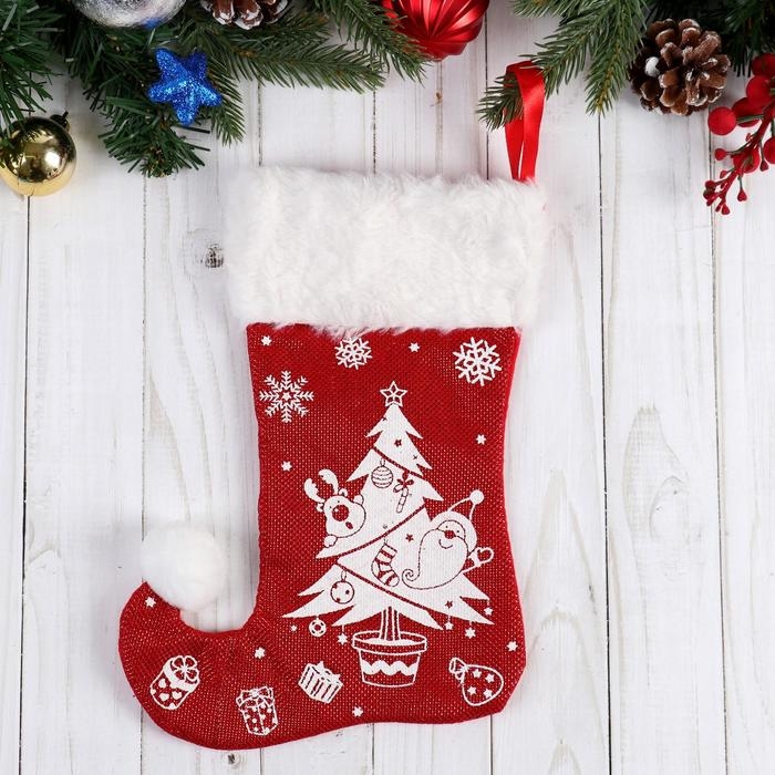 Носок для подарков "Волшебство" ёлочка с подарками, 18х25 см, бело-красный
