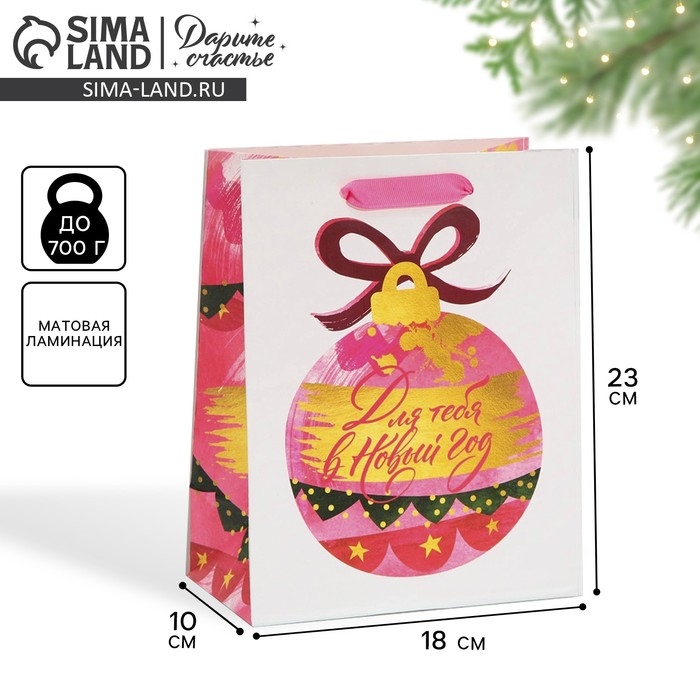 Пакет подарочный новогодний ламинированный «Для тебя в Новый Год», MS 18 х 23 х 10 см