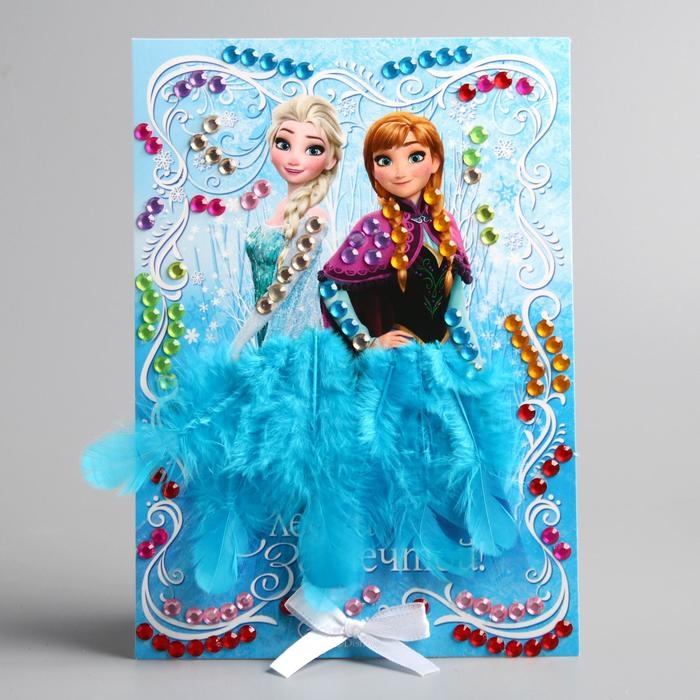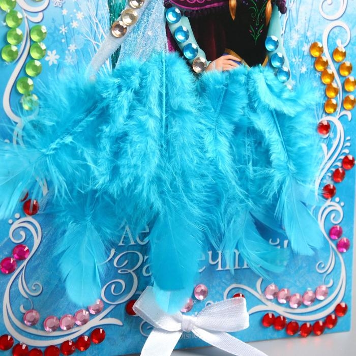 Аппликация перьями и стразами, бантик, А5 "Следуй за мечтой!", Холодное сердце