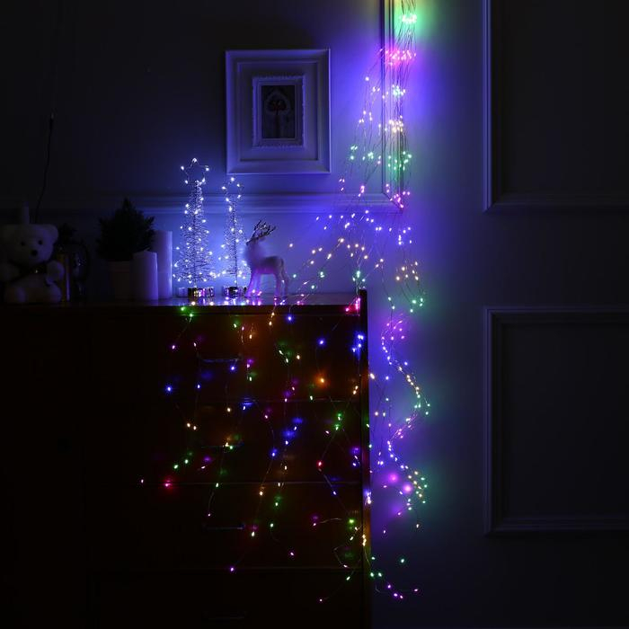 Гирлянда «Конский хвост» 20 нитей по 2 м, IP20, серебристая нить, 400 LED, свечение мульти, 12 В