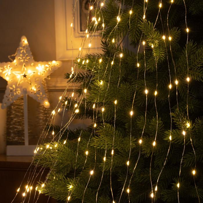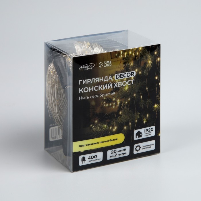 Гирлянда «Конский хвост» 20 нитей по 2 м, IP20, серебристая нить, 400 LED, свечение тёплое белое, 12 В