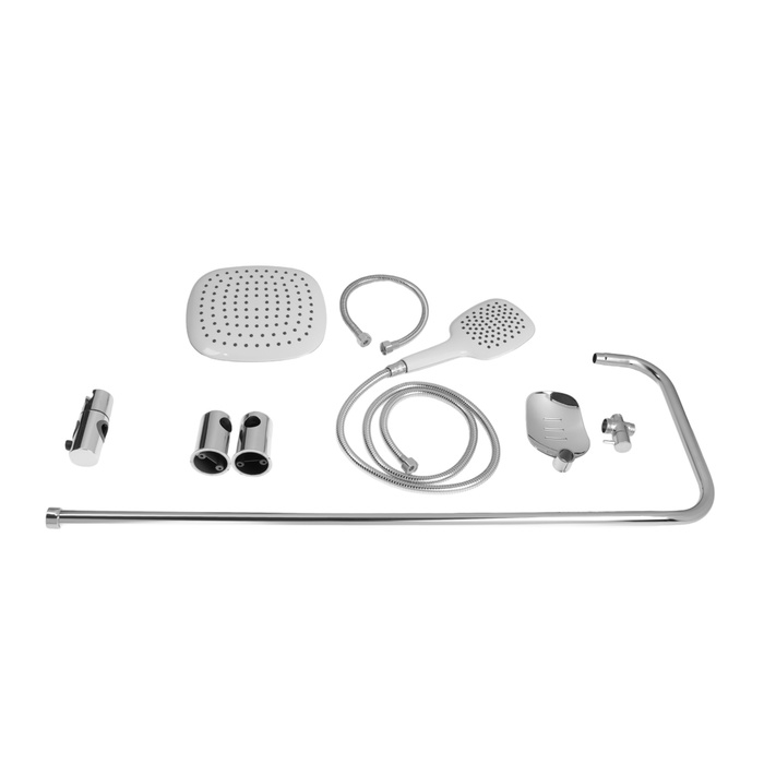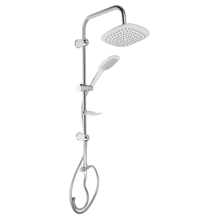 Душевая система ZEIN Z1002, тропическая и ручная лейка, шланги, стойка, мыльница, хром