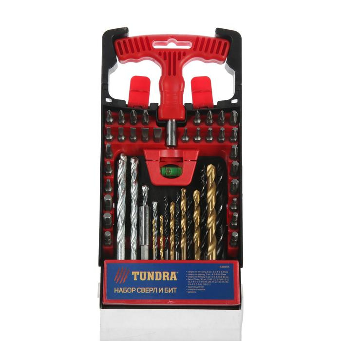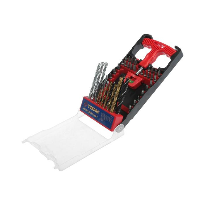 Набор сверл и бит ТУНДРА, по дереву, бетону и металлу, с держателем, 50 предметов