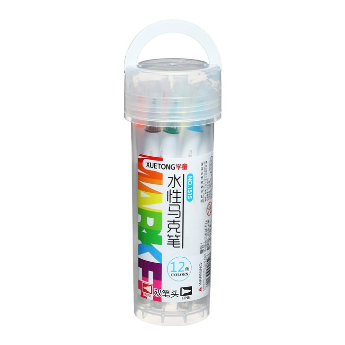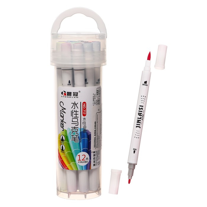Набор маркеров 12 цветов двусторонние, кистеобр/пулевидн наконечники в пластиковом тубусе