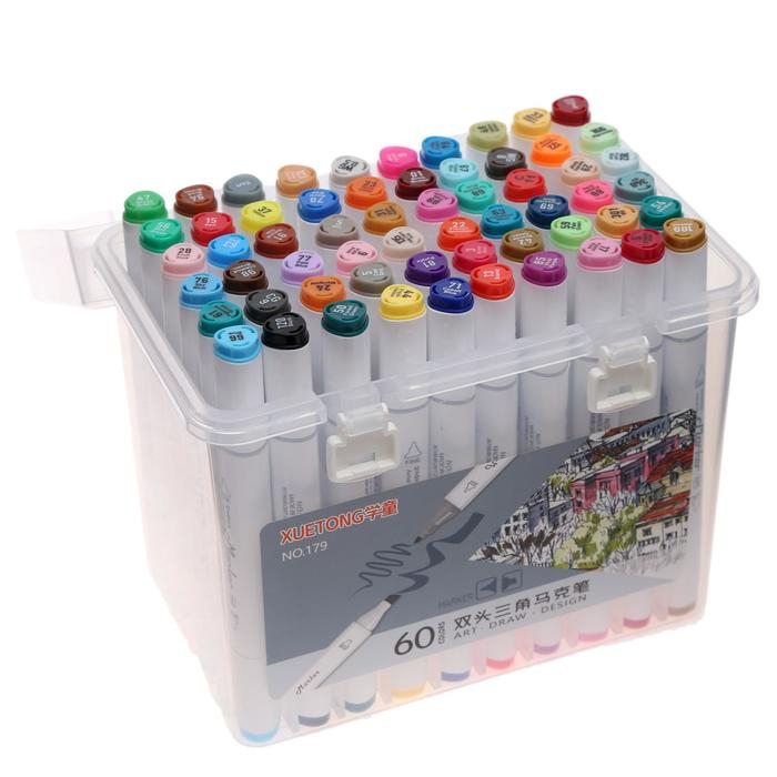 Набор маркеров для скетчинга двусторонние 60 штук/60 цветов