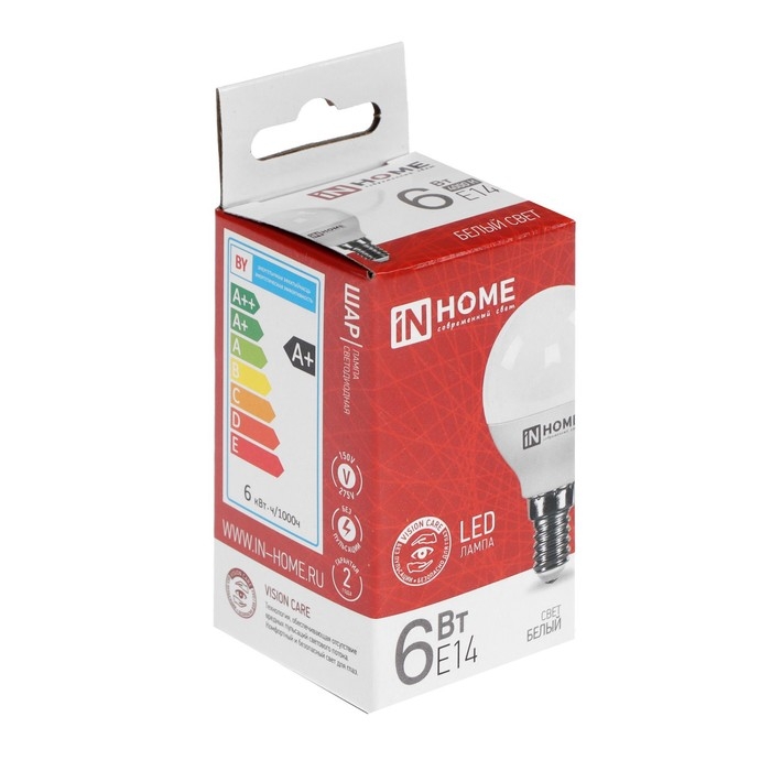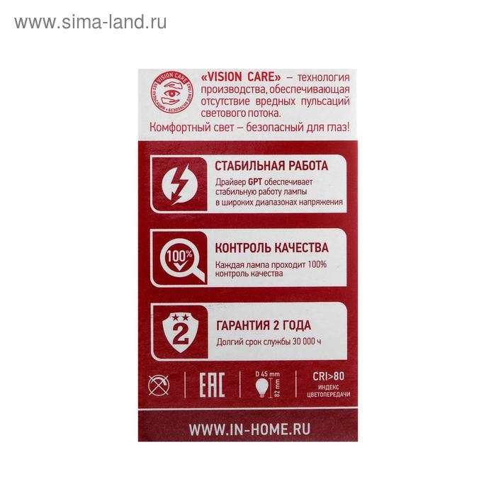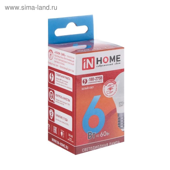 Лампа светодиодная IN HOME, Е14, 6 Вт, 570 Лм, 4000 К, дневной белый