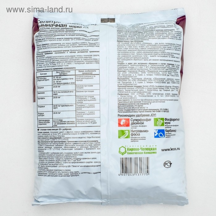 По сравнению с аммиачной селитрой имеет лучшие физико-химические свойства и менее гигроскопично.
