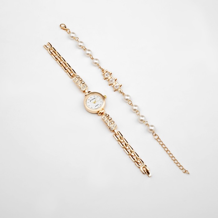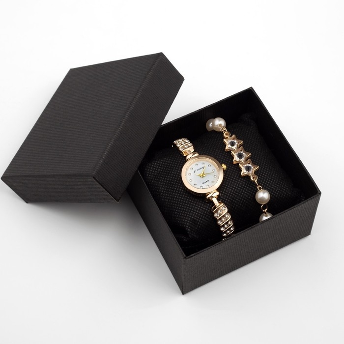 Женский подарочный набор "Эйенн" 2 в 1: наручные кварцевые часы, браслет, d-2.5 см