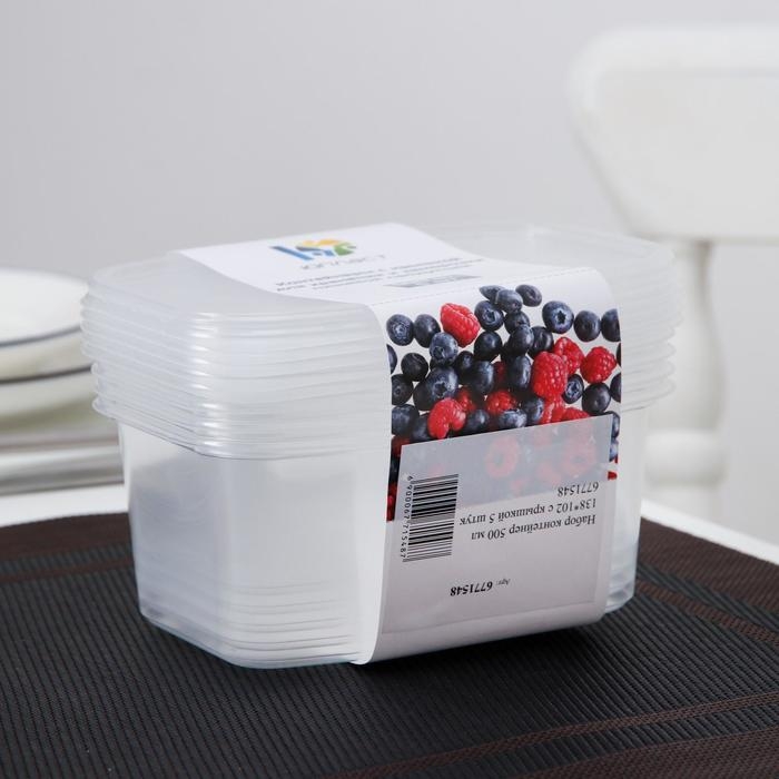 Набор контейнеров, 500 мл, 13,8×10,2 см, 5 шт, с крышкой, цвет прозрачный