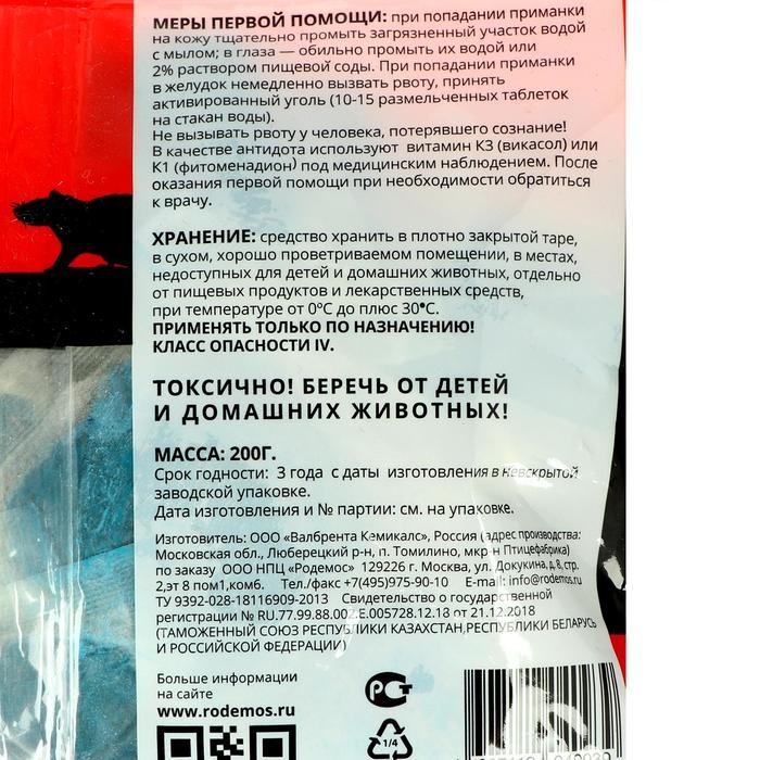Брикет имеет мягкую текстуру, что позволяет крысам легко его проглотить, а специально разработанная формула является быстродействующей и гарантирует успешное уничтожение грызунов.
