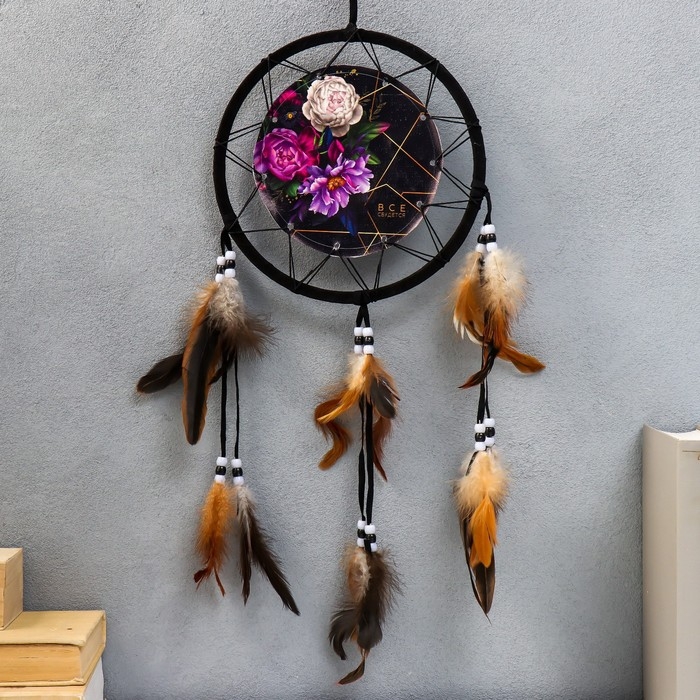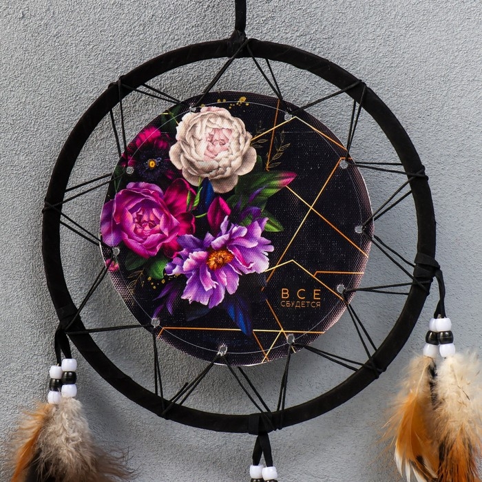 Ловец снов "Пионы на чёрном - всё сбудется" d=20 см