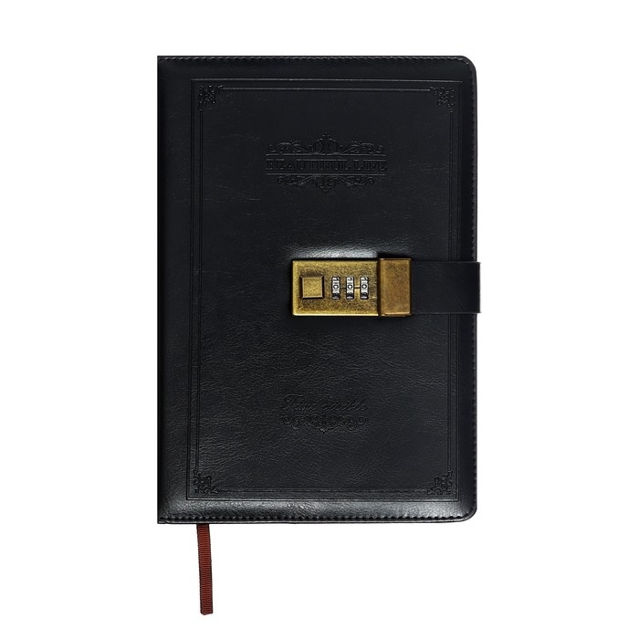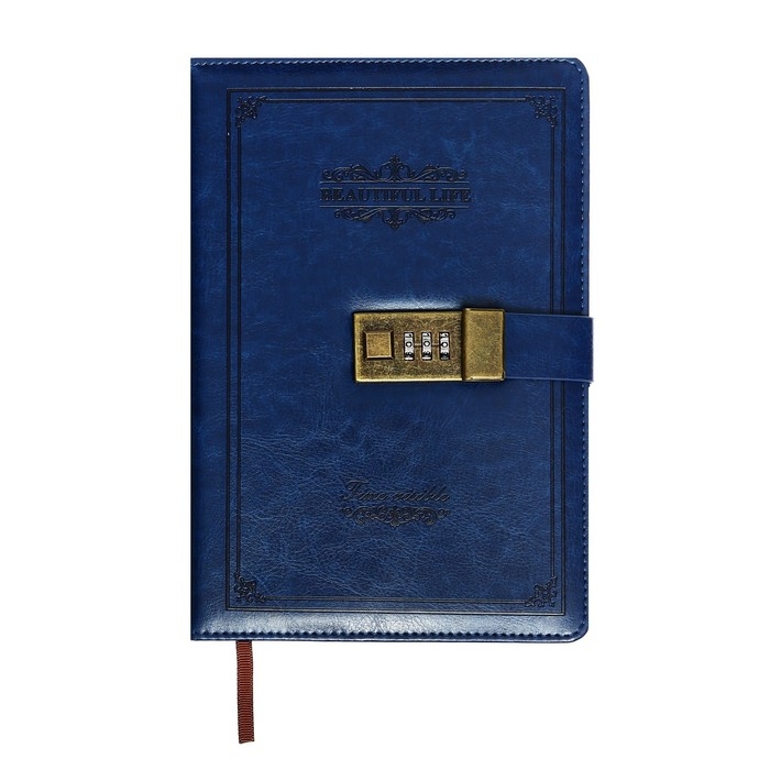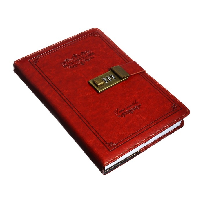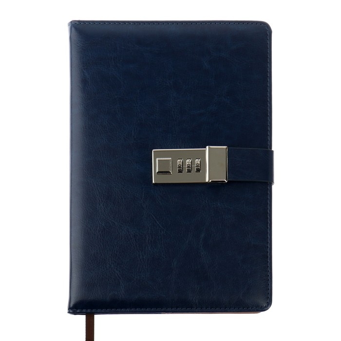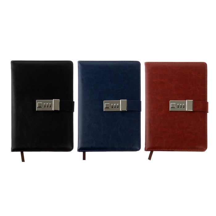 Ежедневник недатированный А5, 100 листов в клетку, с хлястиком, обложка кожзам (с кодовым замком) МИКС