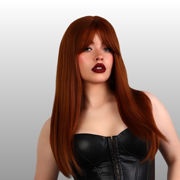 Парик искусственный, с чёлкой, имитация кожи, 60 см, цвет рыжий