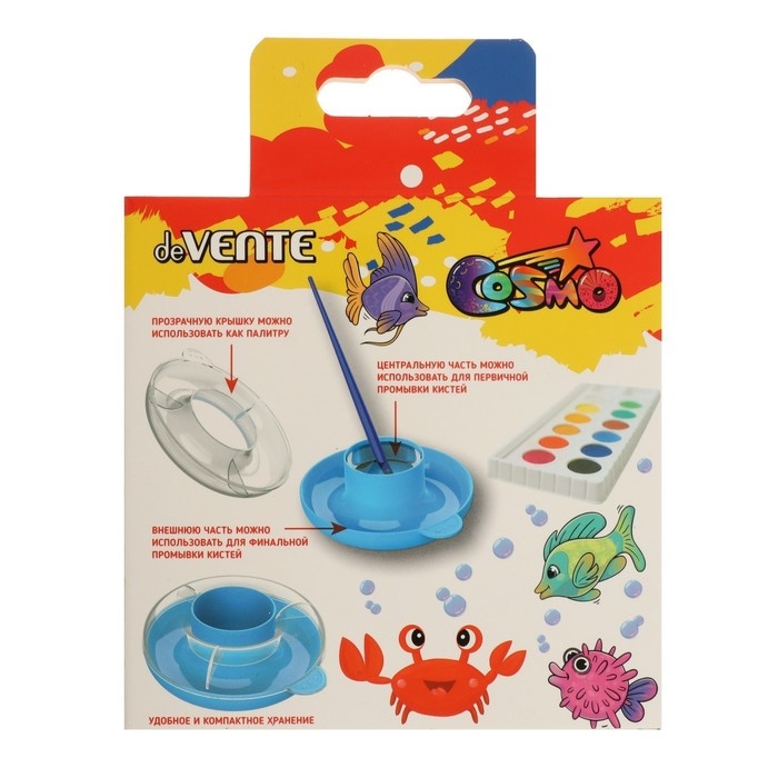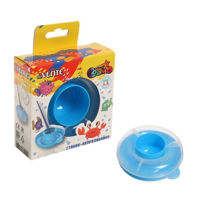 Стакан-непроливайка "deVENTE" с 2-мя резервуарами для воды и палитрой, цвет голубой, в картонной коробке.