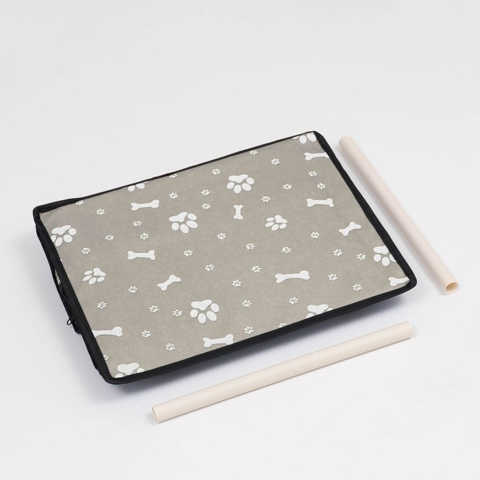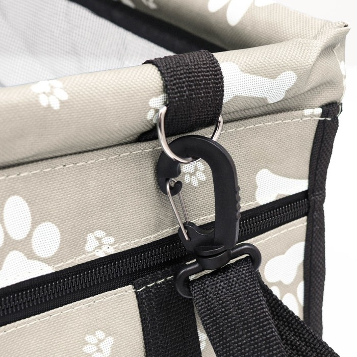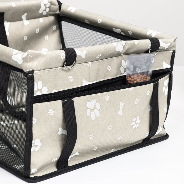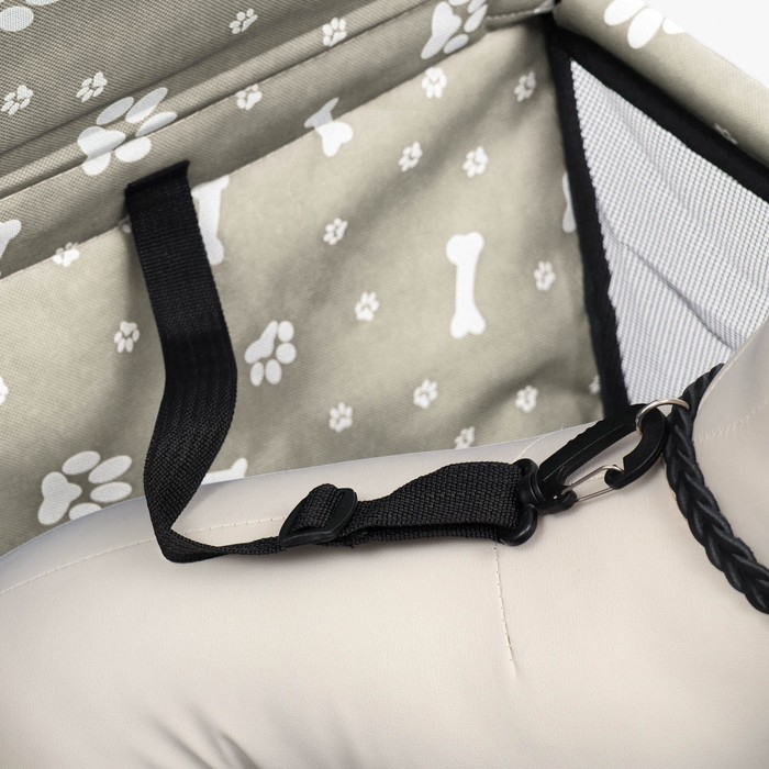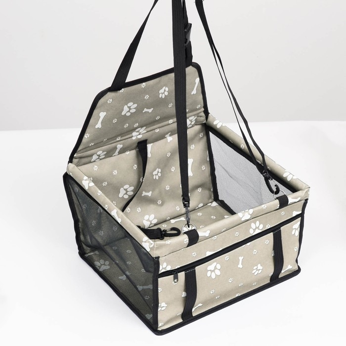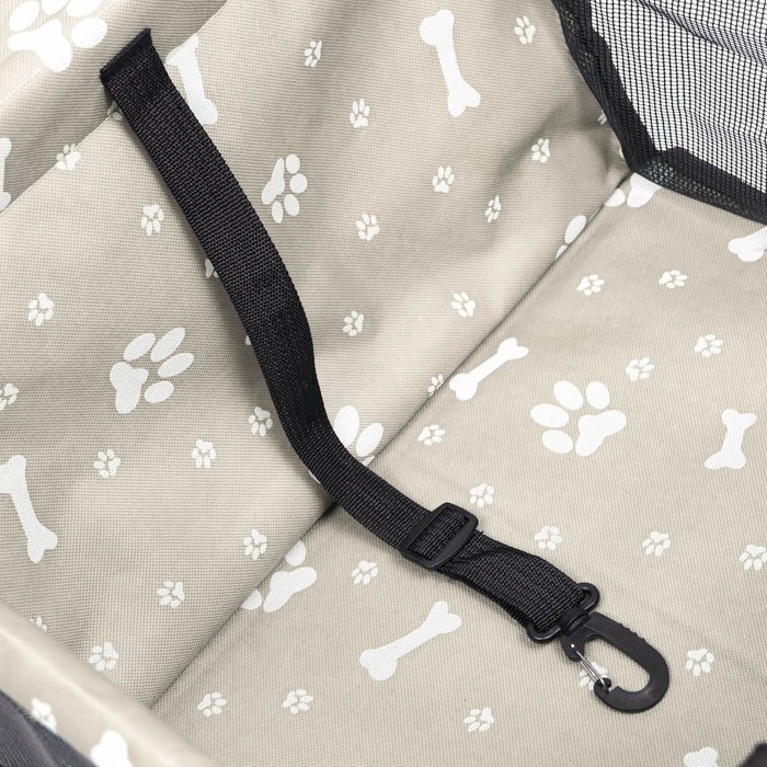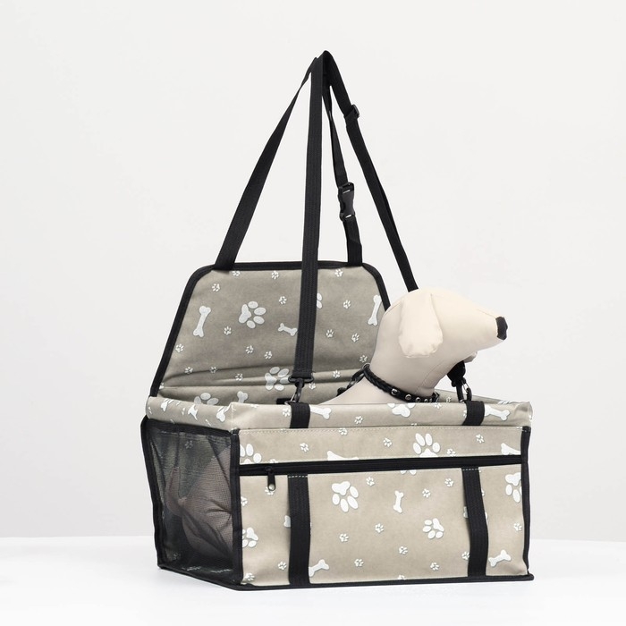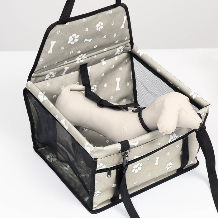 Автокресло для животных 40*30*25 см, серое с белыми лапками и косточками