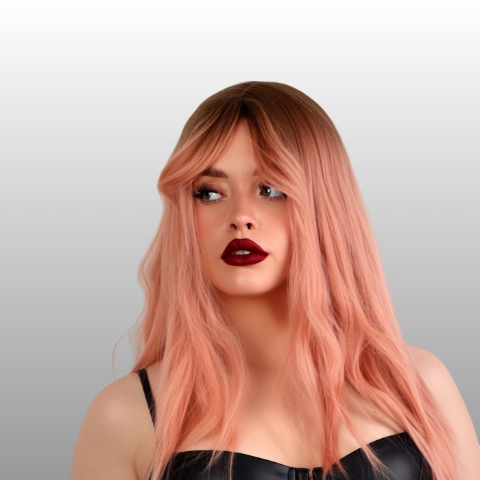 Парик искусственный, с чёлкой, имитация кожи, 60 см, цвет русый/пепельно-розовый