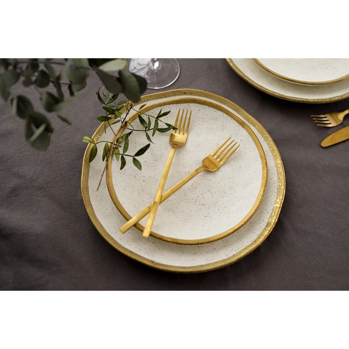 Посуда серии Magistro Poursephona — это современная фарфоровая посуда. В оформлении серии превалируют два цвета – бежевый оттенок фарфора и роскошное золото в виде широкой окантовки предметов. Идеально подходит как для формального обеда, так и для торжеств по особым случаям. Лаконичные формы, золотая окантовка, разноцветные вкрапления придают изделиям из фарфора одновременно необычный и современный вид.