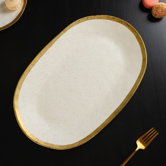 Блюдо фарфоровое сервировочное Magistro Poursephona, 37×24 см, цвет бежевый