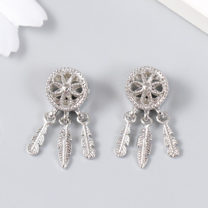 Бусина для творчества металл "Ловец снов с сердцем" серебро 1х2,8 см