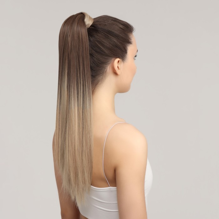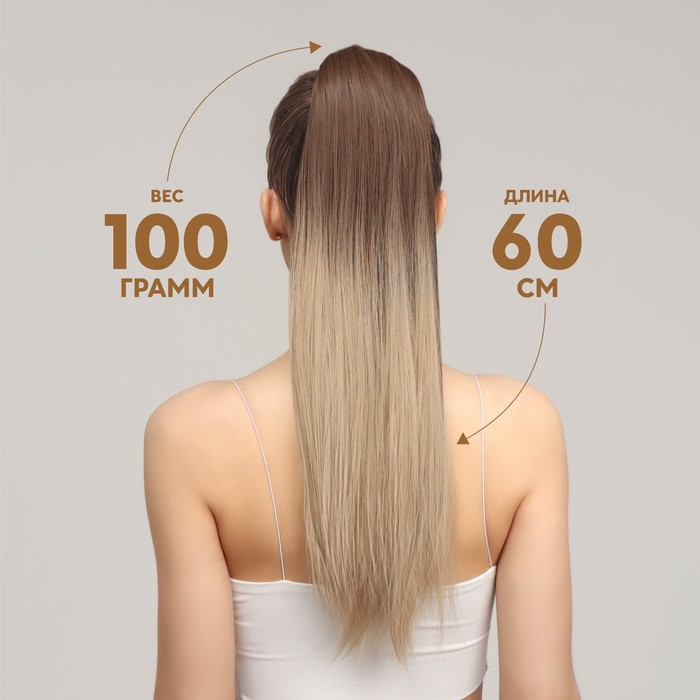 Хвост накладной, прямой волос, на резинке, 60 см, 100 гр, цвет омбре русый/блонд