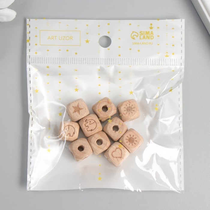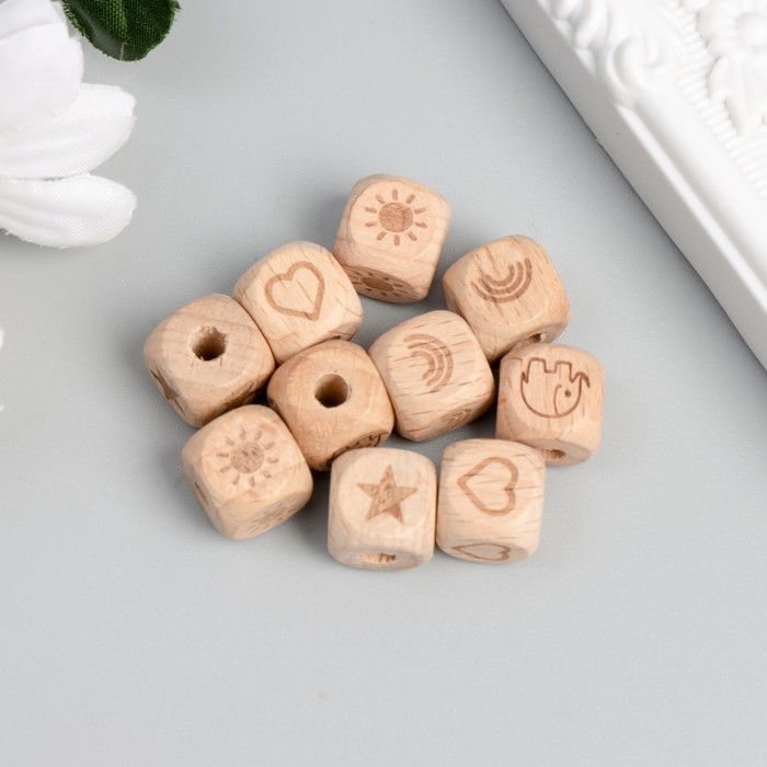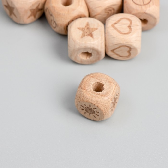 Бусина дерево для творчества "Кубики. Рисунки" 1,4 см набор 10 шт
