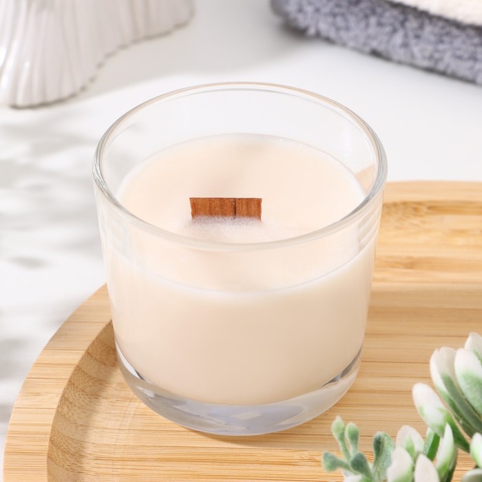 Свеча из соевого воска в стакане с деревянным фитилем "Горная лаванда", 65 гр