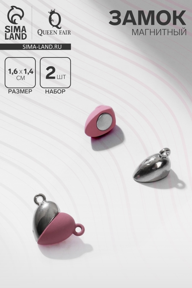 Замок магнитный «Сердечко» (набор 2 шт.), цвет серебристо-розовый