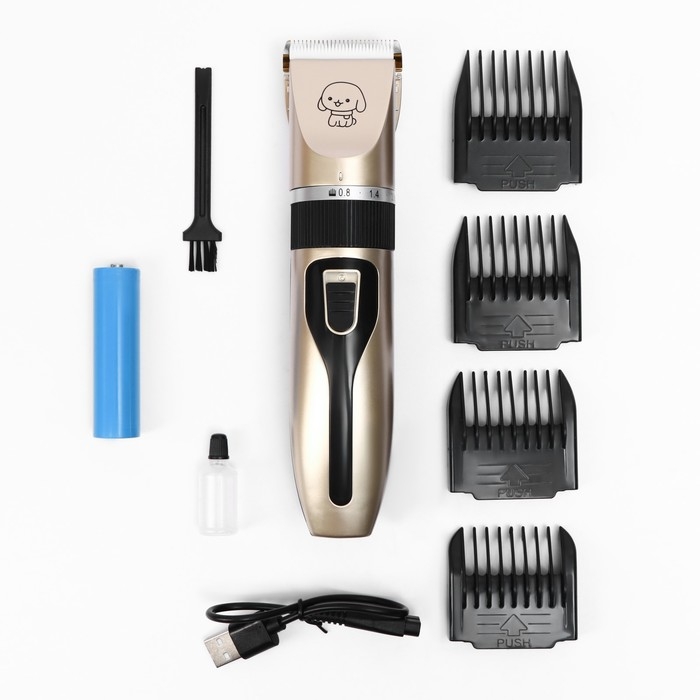 Профессиональный груминг и уход за питомцами становятся гораздо проще с использованием качественного инструмента, такого как машинка для стрижки животных. Данная машинка для стрижки домашних животных подойдёт для коммерческого и домашнего использования. Ножи триммера изготовлены из керамики.Машинка для груминга имеет высокое качество сборки и продуманную эргономику, а также имеет низкий уровень шума, что очень важно при работе с животными. Возможна работа машинки от аккумулятора, так и от сети, в проводном режиме питания. Удобная регулировка лезвий под любой тип шерсти.В комплект входит четыре самые необходимые насадки, расческа для вычесывания шерсти, USB-зарядку и запасной аккумулятор. Чтобы машинка прослужила долго и не ломалась, перед процедурой четвероногого друга нужно помыть, а после окончания процедуры очистить триммер от шерсти, и в конце смажьте маслом – это продлит срок службы. Систематический груминг животного поможет сохранить здоровье кожи питомца и его шерсти в чистом и хорошем состоянии.