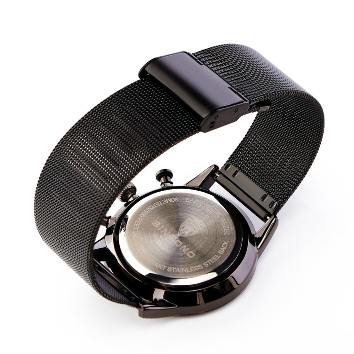Часы наручные кварцевые мужские, с календарем, d-4.2 см, ремешок l-26 см, 3 АТМ, черные