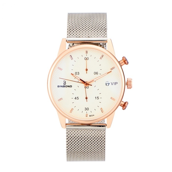 Часы наручные кварцевые женские, с календарем, d-4.2 см, ремешок l-26 см, 3 АТМ