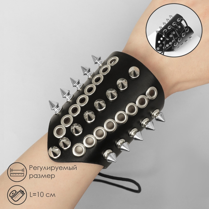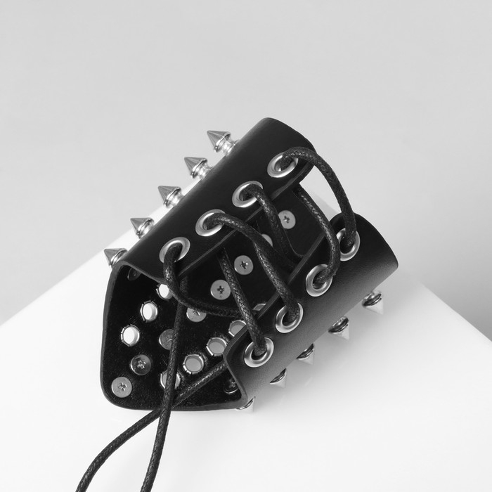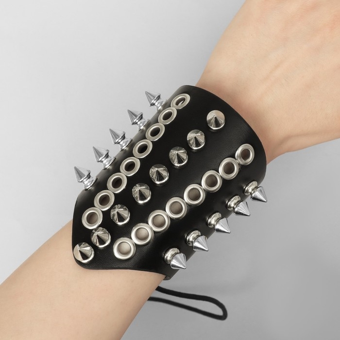 Браслет кожа «Манжета» с шипами, цвет чёрно-серебряный
