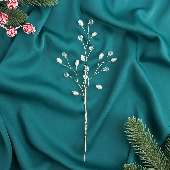 Новогодняя ветка декоративная «Зимнее волшебство. Хрустальная сказка», пластик, 25 см, капелька