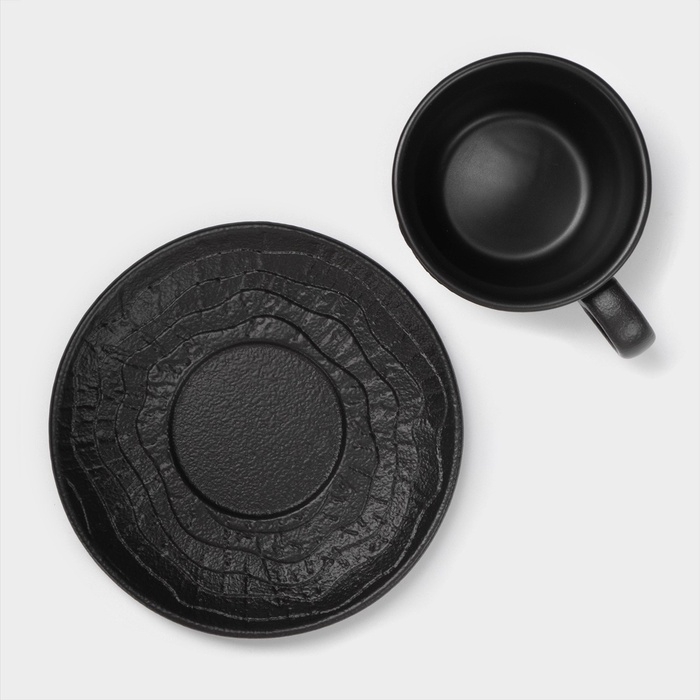 Чайная пара Magistro Black style, 2 предмета: чашка 200 мл, блюдце d=14,5 см, фарфор, чёрная