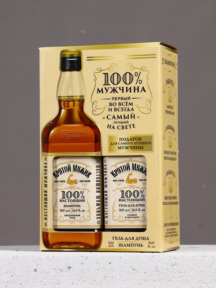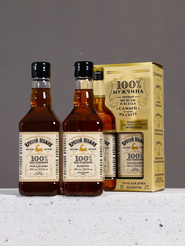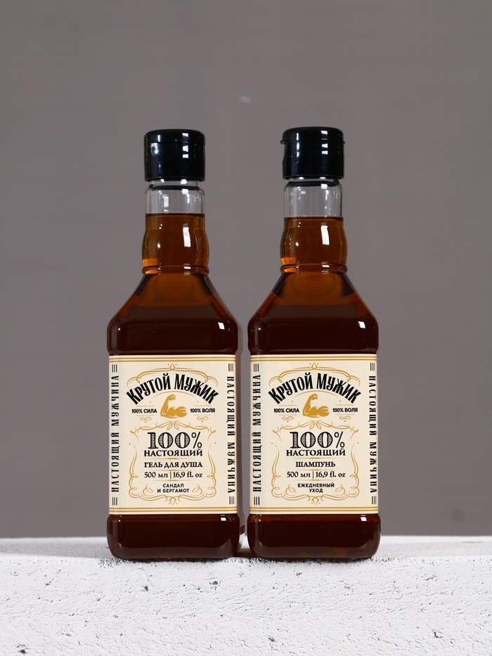Набор "Крутой мужик" белый, гель для душа и шампунь для волос во флаконе виски, 2х500