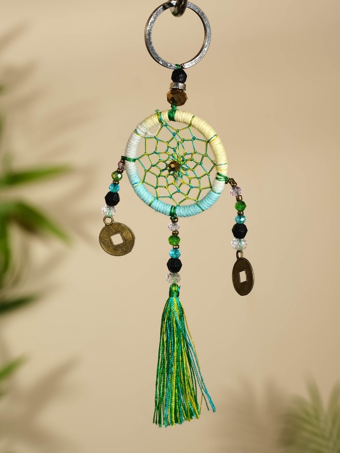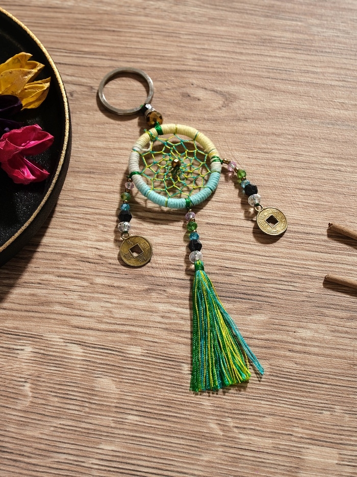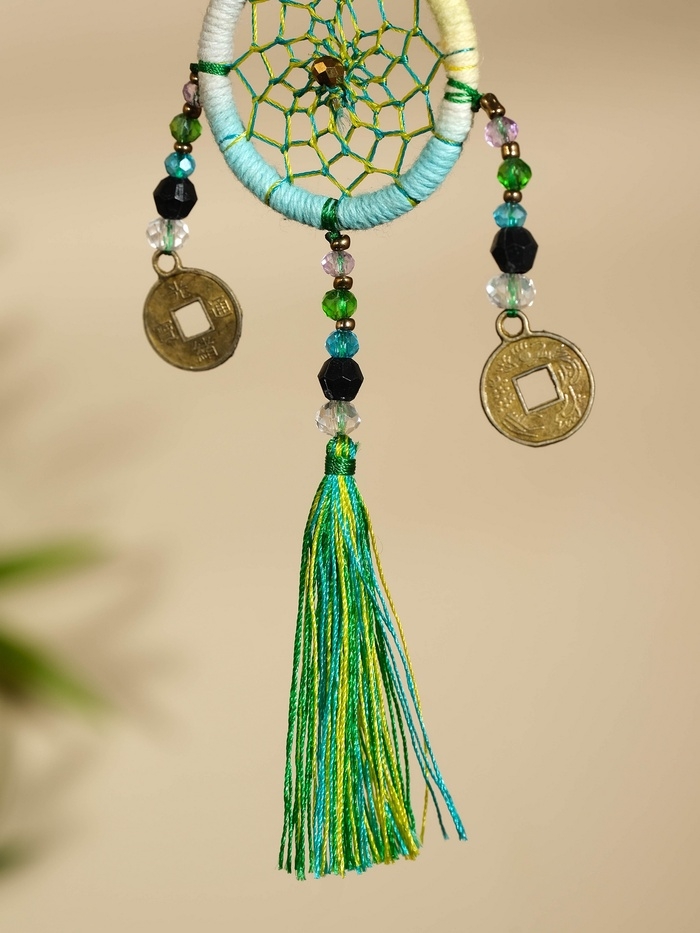 Брелок "Ловец снов" 4х15 см. жёлто-голубой
